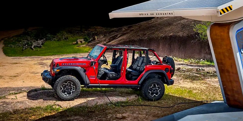 Like every SUV in the Jeep lineup, the Wrangler 4xe is built to perform. All models feature an eight-speed automatic transmission that improves engine responsiveness while delivering precise acceleration and sharp handling. While most hybrid vehicles feature two-wheel drive, the Wrangler 4xe can give you four-wheel-drive capabilities, thanks to its two electric motors. If you go with the Rubicon 4xe, you can take advantage of Tru-Lock electronic locking differentials and advanced traction systems that make it easy to take on off-road obstacles like rocks, logs, and streams.